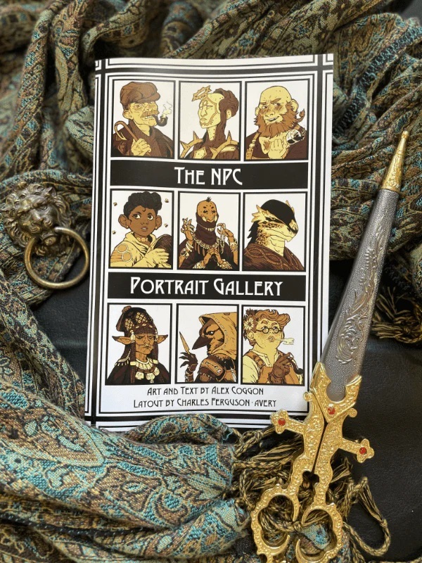 The NPC Gallery is a NPC catalogue filled to the brim with portraits and profiles of mundane and strange characters alike. Each character will have a short blurb about them as well as a portrait to illustrate their features. This zine will help inject fun, unexpected encounters with unique and recognizable characters.